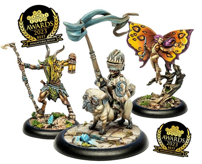 Juego de miniaturas de fantasía tipo escaramuzas. las cajas de ejercito son de 3 miniaturas o de gigantes con 1 miniatura.