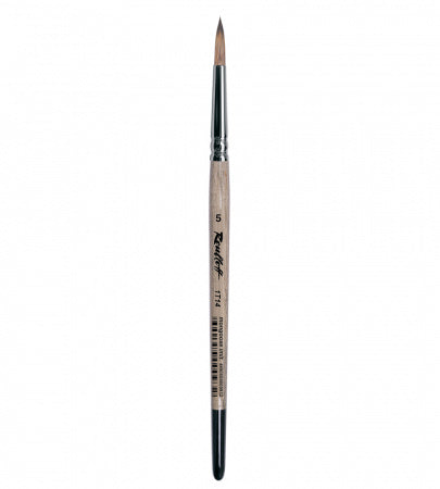 Pincel redondo de longitud corta hecho de imitación de mangosta es más duradero que el pelo de ardilla y, al mismo tiempo, más flexible que el de cerda. Esta calidad te permite pintar con acuarela, tinta, gouache y acrílico.